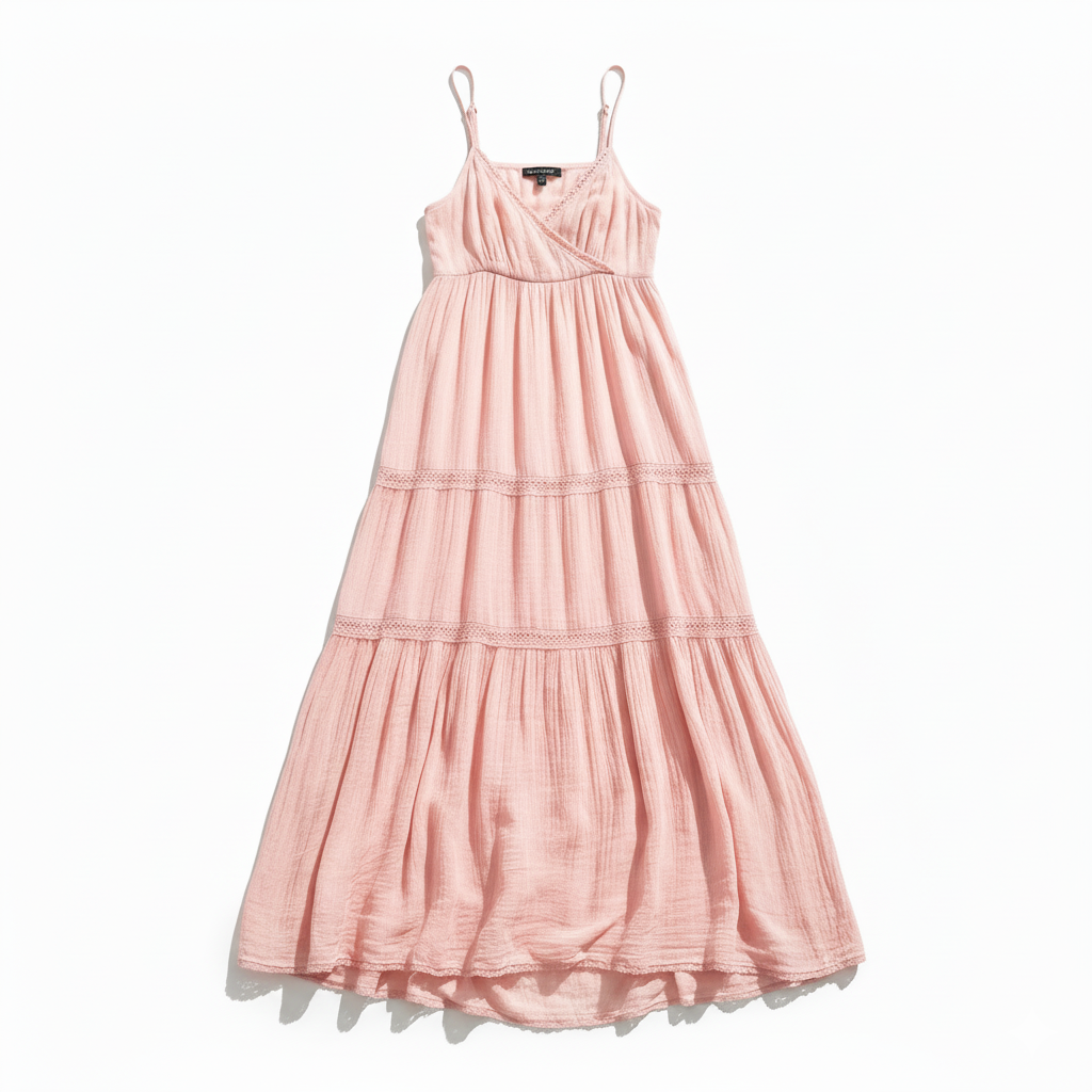 Vestido largo bohemio con tiras finas – color rosado